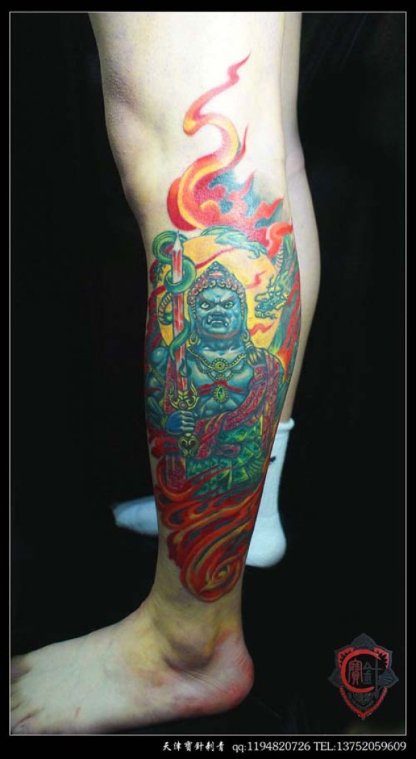 腿部经典很酷的一款传统不动明王纹身图案_传统纹身图案大全_纹身图吧