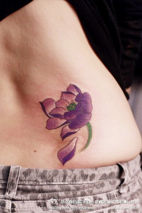 美女腰部好看的彩色传统莲花纹身图案_传统纹身图案大全_纹身图吧