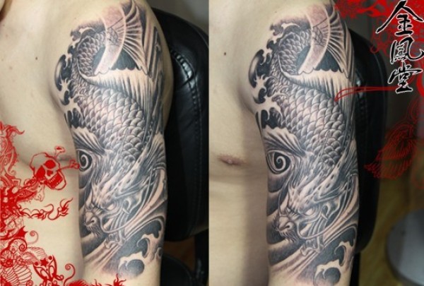 手臂传统鳌鱼纹身图案大全系列_传统纹身图案大全_纹身图吧