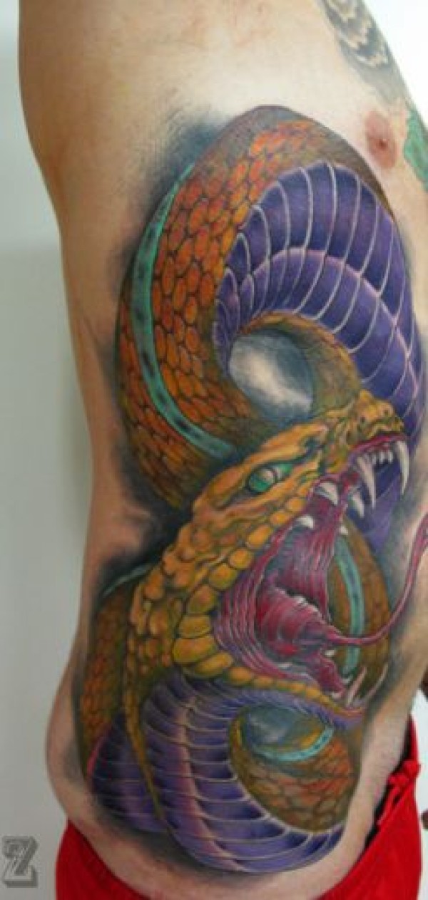 腰部传统彩色蛇纹身图案纹身图片_传统纹身图案大全_纹身图吧
