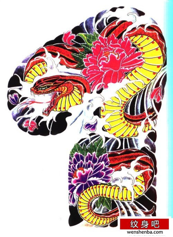 纹身推荐一款传统嘎巴拉蛇纹身图案_传统纹身图案大全_纹身图吧