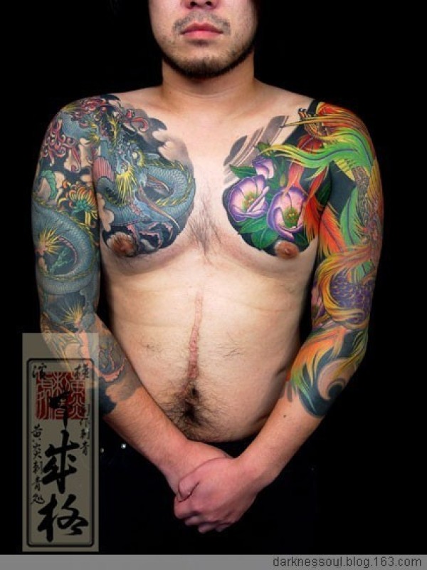 新传统彩色半胛七分袖_传统纹身图案大全_纹身图吧