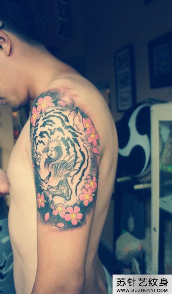 传统老虎头樱花纹身_传统纹身图案大全_纹身图吧