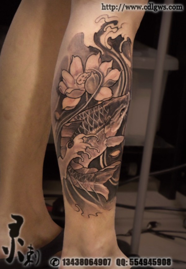 传统莲花鱼纹身图案_传统纹身图案大全_纹身图吧