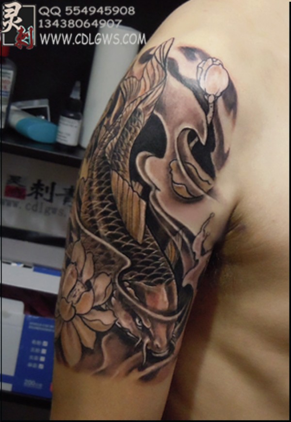 传统莲花鱼纹身图案_传统纹身图案大全_纹身图吧