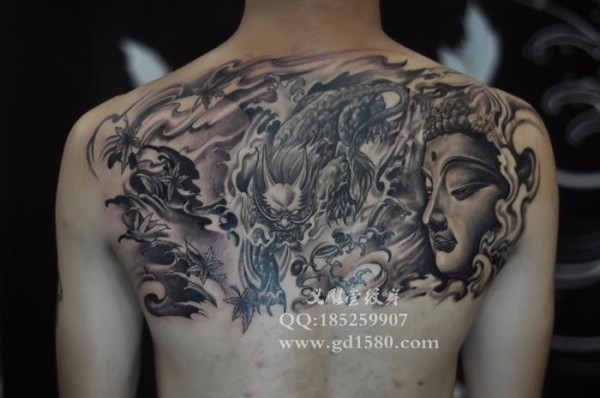 后背佛头纹身传统作品_传统纹身图案大全_纹身图吧