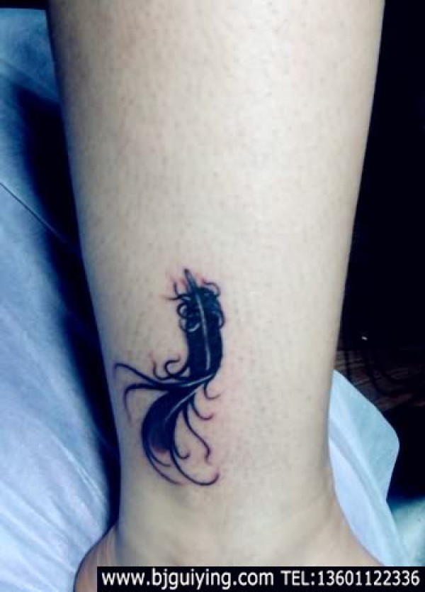 脚踝上的羽毛纹身传统纹身风格_传统纹身图案大全_纹身图吧