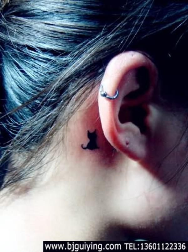 耳朵后面的小猫纹身传统纹身风格_传统纹身图案大全_纹身图吧