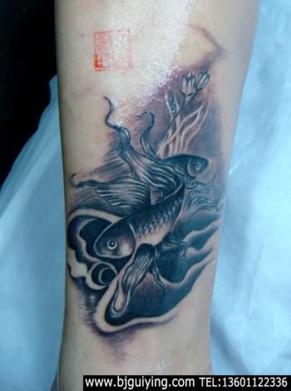 传统莲花鱼纹身图案_传统纹身图案大全_纹身图吧