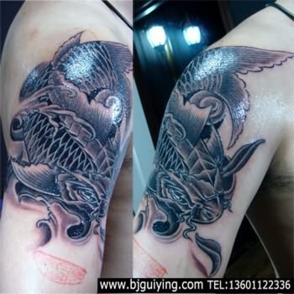 传统莲花鱼纹身图案_传统纹身图案大全_纹身图吧