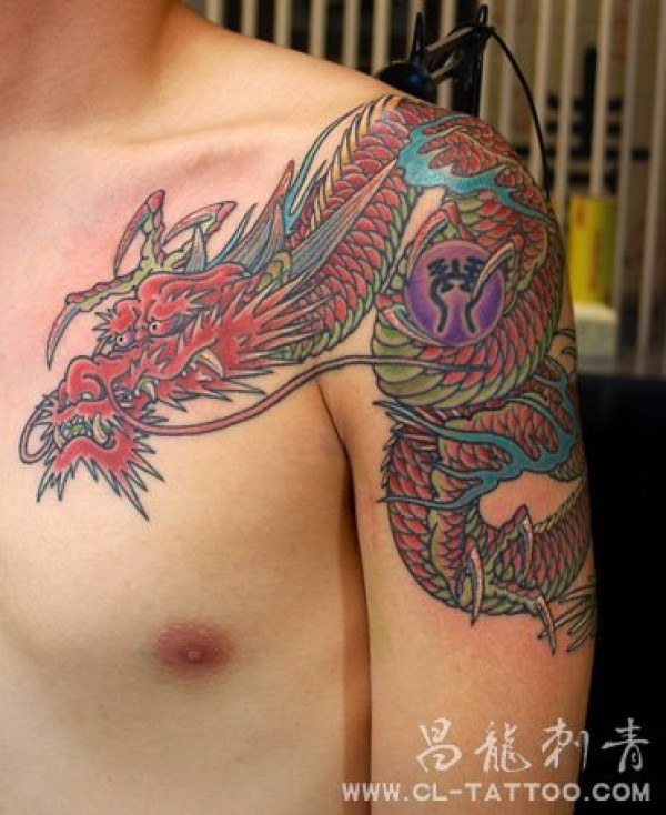 传统彩色过肩龙_男士大图_传统纹身图案大全_纹身图吧