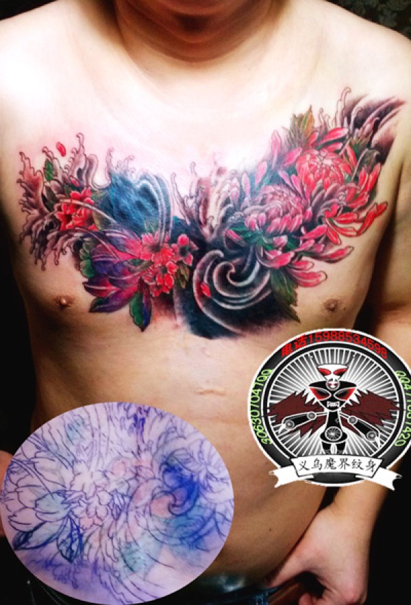 传统菊花莲花遮盖失败纹身_传统纹身图案大全_纹身图吧