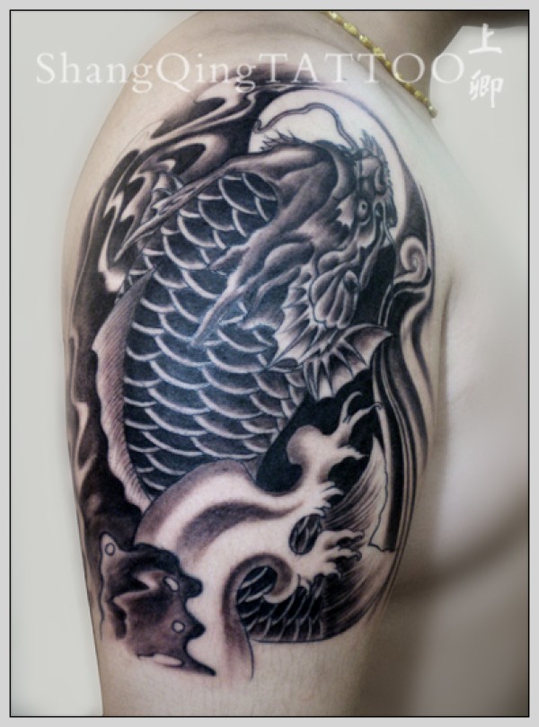 传统招财图案龙鱼纹身_传统纹身图案大全_纹身图吧