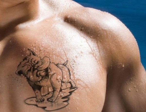 男士胸部的小狗图案纹身_动物纹身图案大全_纹身图吧