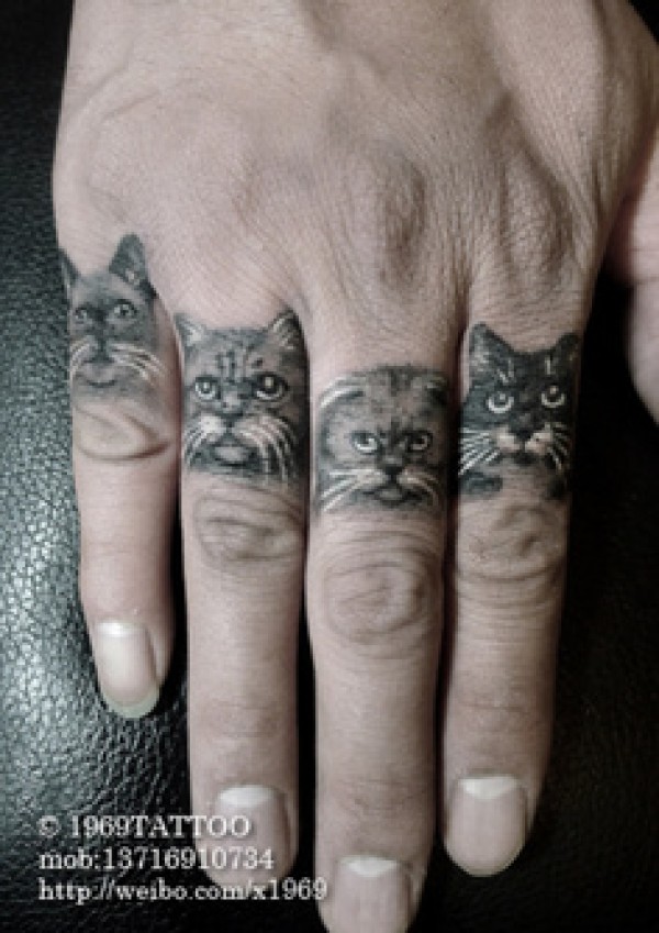 四指艺术个性小猫纹身图_动物纹身图案大全_纹身图吧