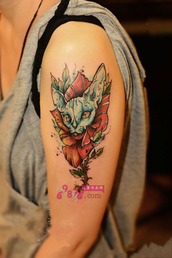 精灵猫咪手臂纹身_动物纹身图案大全_纹身图吧