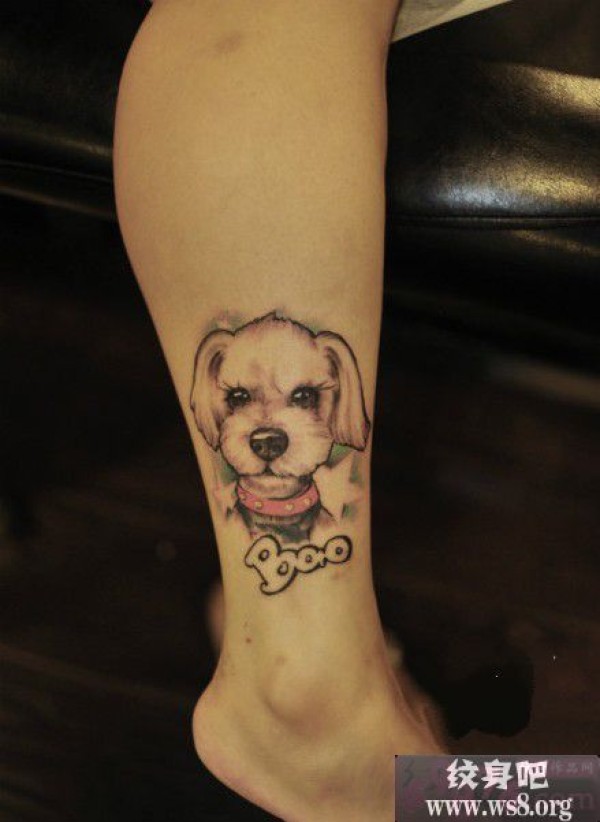 可爱狗狗肖像脚踝刺青图案_动物纹身图案大全_纹身图吧