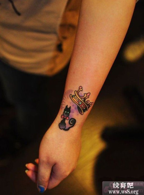 小猫咪皇冠手腕纹身图案_动物纹身图案大全_纹身图吧