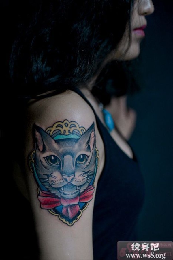 创意猫咪头像清新纹身图案_动物纹身图案大全_纹身图吧