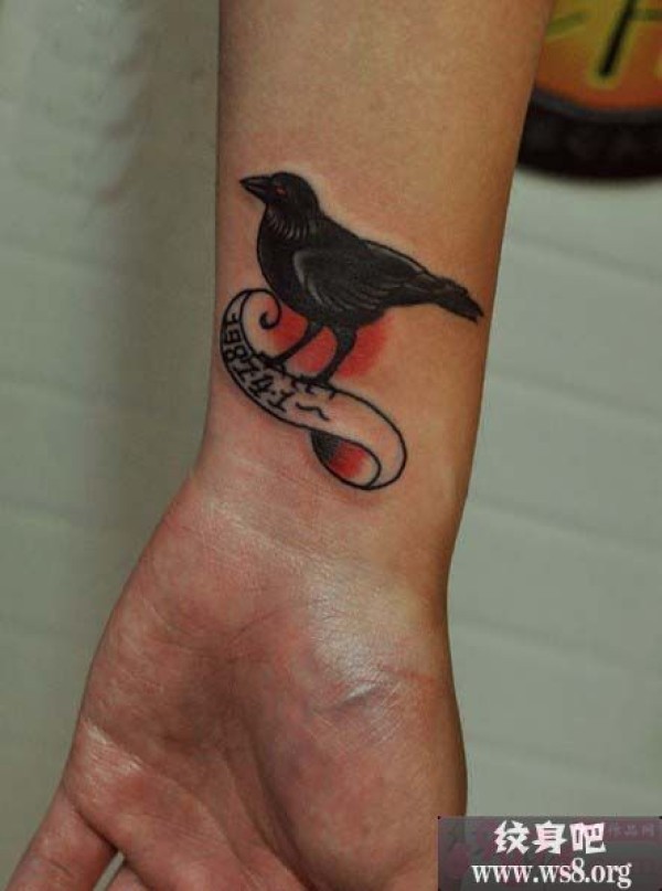 手腕乌鸦刺青图案图案_动物纹身图案大全_纹身图吧