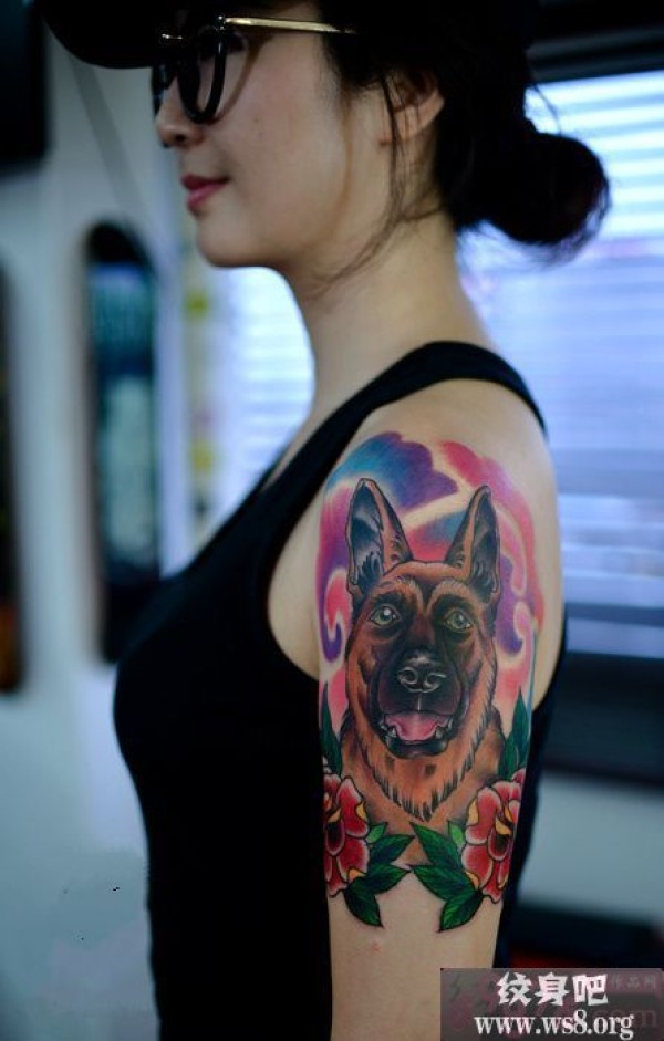 美女手臂德国黑背狗狗纹身图案_动物纹身图案大全_纹身图吧