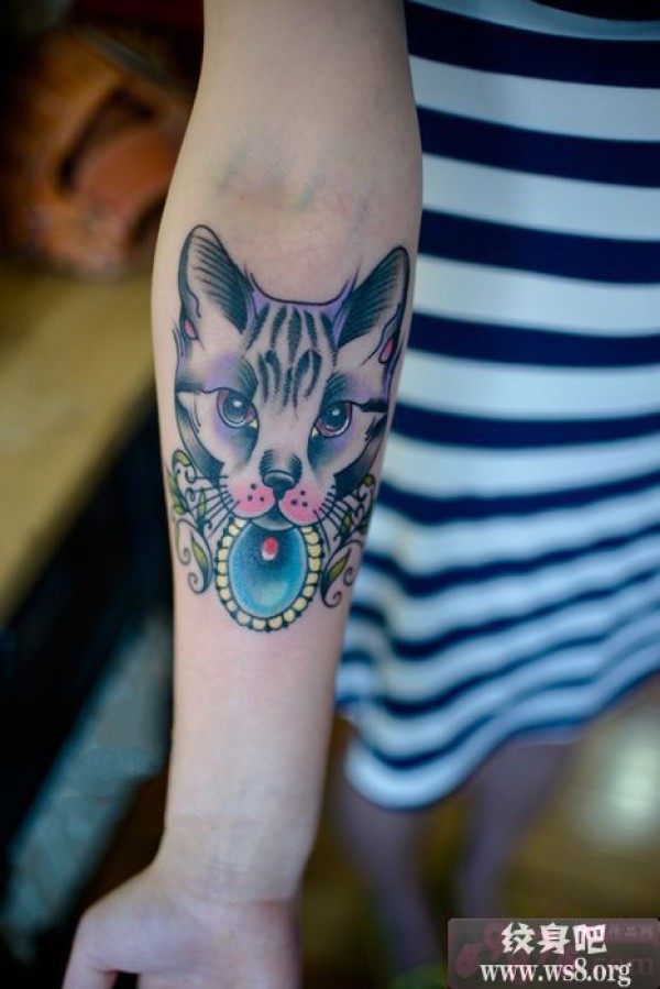 可爱猫咪头像小臂纹身图案_动物纹身图案大全_纹身图吧