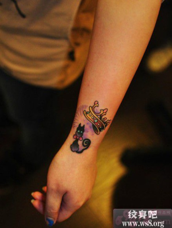 小猫咪皇冠手腕纹身图案_动物纹身图案大全_纹身图吧