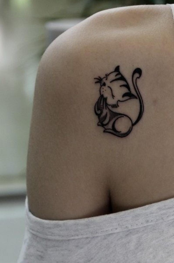 女性肩部小猫刺青_动物纹身图案大全_纹身图吧