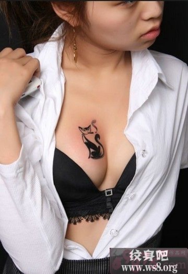 性感胸部猫咪纹身贴图案_动物纹身图案大全_纹身图吧