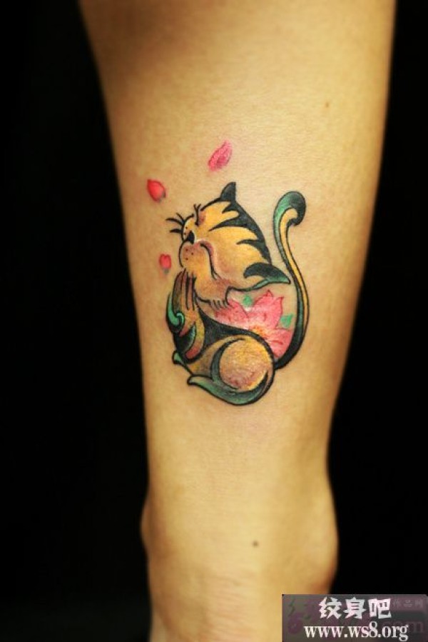 后脚踝猫咪樱花纹身图案_动物纹身图案大全_纹身图吧