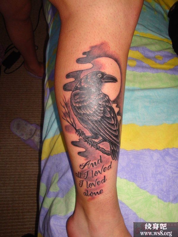 小腿个性乌鸦纹身图案_动物纹身图案大全_纹身图吧