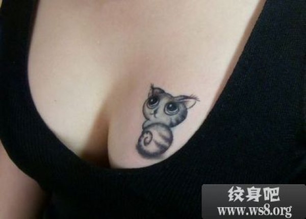 美女胸部可爱猫咪纹身图案_动物纹身图案大全_纹身图吧