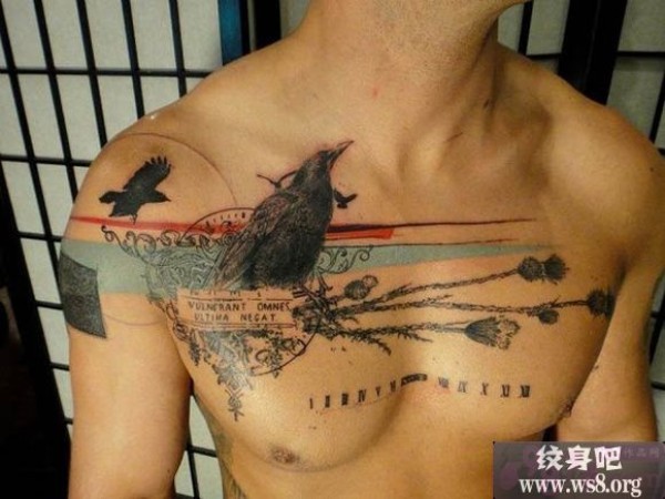 男生胸前黑暗乌鸦个性刺青图案_动物纹身图案大全_纹身图吧