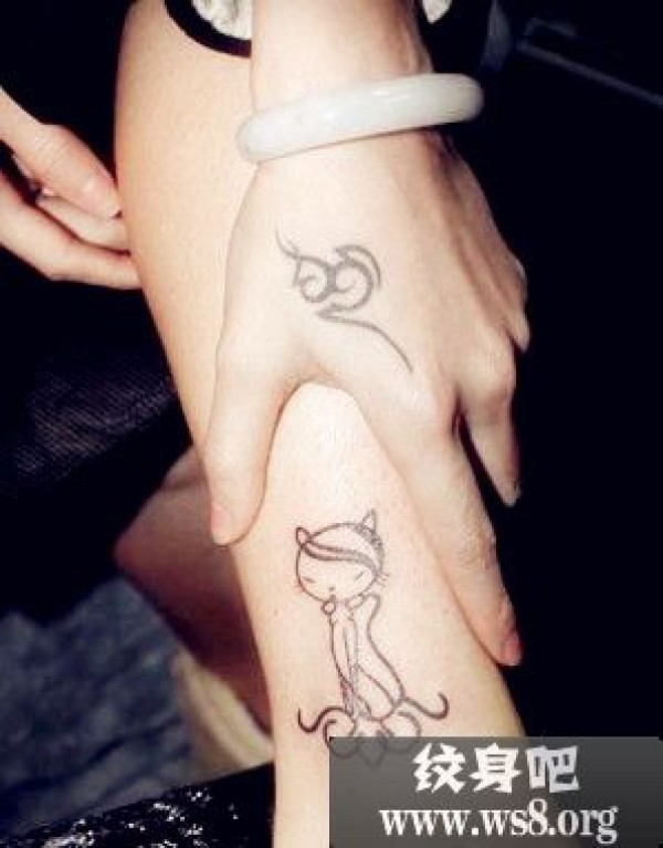 女生手背图腾与腿部小猫刺青图案_动物纹身图案大全_纹身图吧