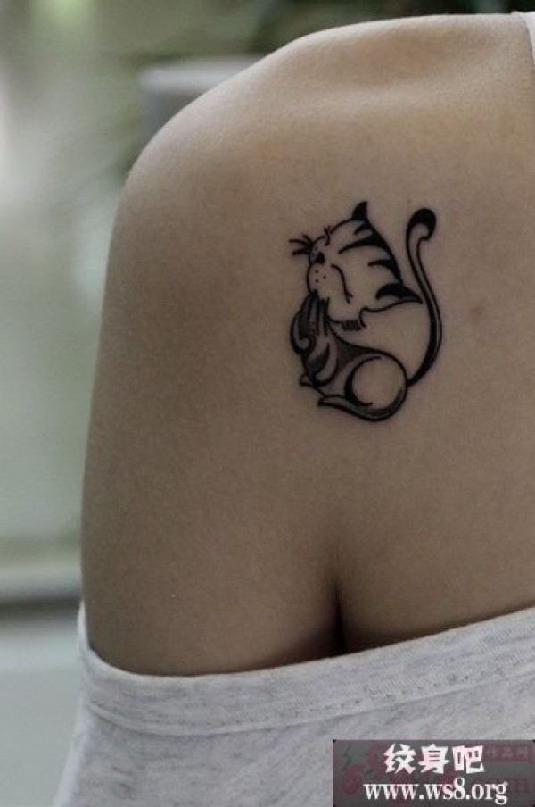 肩部可爱猫咪个性刺青图案_动物纹身图案大全_纹身图吧