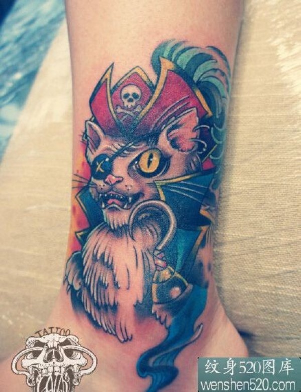 一款海盗船长猫纹身图案_动物纹身图案大全_纹身图吧