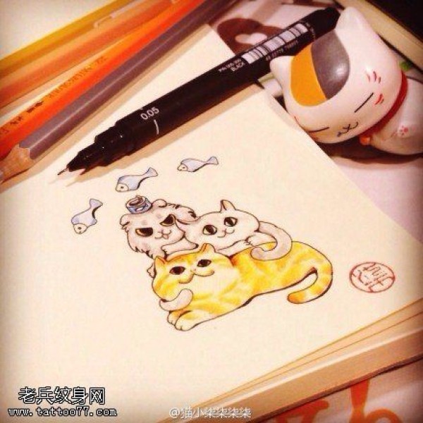 彩色猫咪纹身图案_动物纹身图案大全_纹身图吧