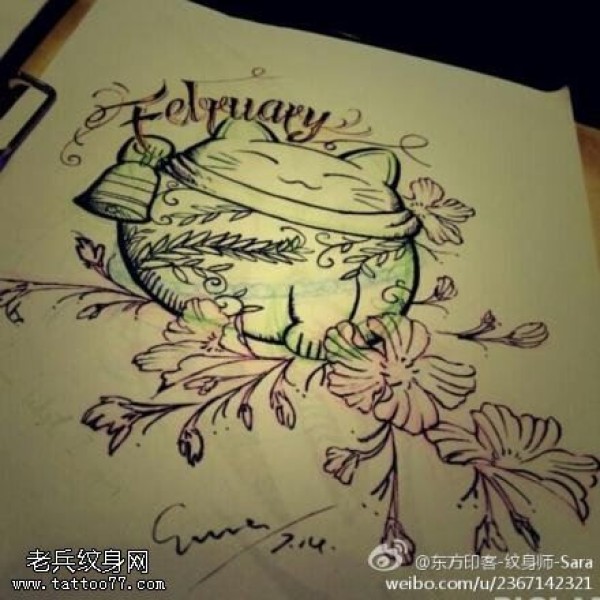 彩色可爱的招财猫纹身图案_动物纹身图案大全_纹身图吧
