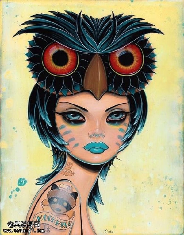 女郎猫头鹰纹身图片_动物纹身图案大全_纹身图吧