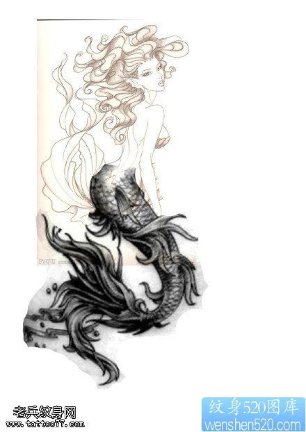 一款素描风格美人鱼纹身图案_动物纹身图案大全_纹身图吧