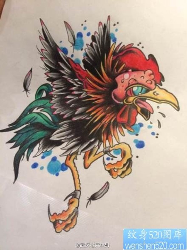 一款霸气的鸡纹身图案_动物纹身图案大全_纹身图吧