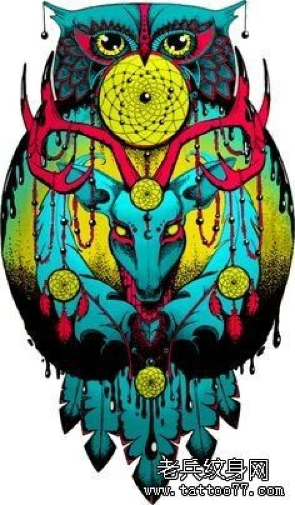 个性猫头鹰纹身图案_动物纹身图案大全_纹身图吧