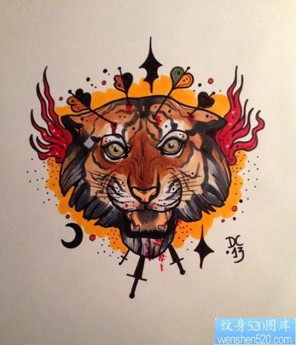 老虎头纹身图案_动物纹身图案大全_纹身图吧