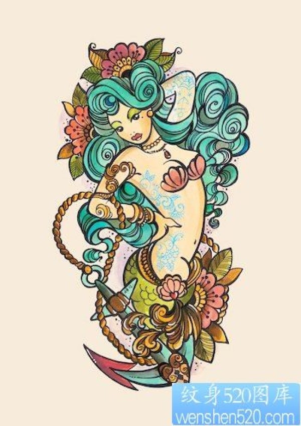 一款彩色美人鱼纹身图案_动物纹身图案大全_纹身图吧