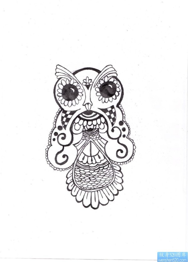 猫头鹰文身素描作品_动物纹身图案大全_纹身图吧