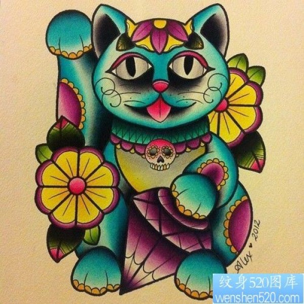 彩色招财猫纹身图案_动物纹身图案大全_纹身图吧