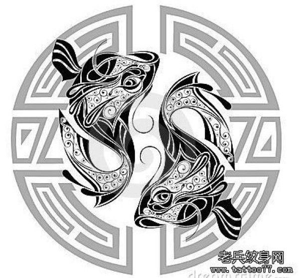 双鱼座纹身手稿_45张十二星座之双鱼手稿纹身图案