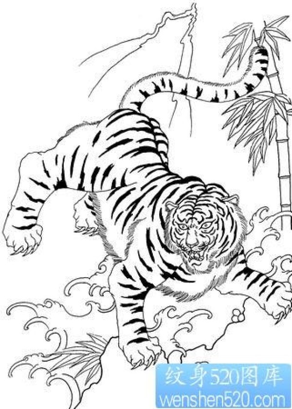 老虎纹身图片作品下山虎纹身图片作品_动物纹身图案大全_纹身图吧