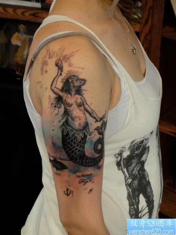 女人胳膊之特别风格美人鱼纹身图案_动物纹身图案大全_纹身图吧