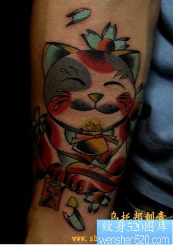 手部招财猫纹身图片_动物纹身图案大全_纹身图吧